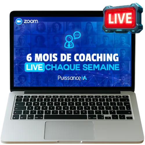 L’un des avantages les plus importants de Puissance IA. Vous allez pouvoir profiter de coachings de groupe chaque semaine pendant 6 mois. Pendant ces séances, vous accédez à des formations en direct sur les IA et aux dernières stratégies.